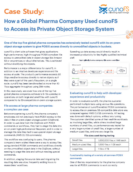 How a Global Pharma Company Used cunoFS to Access its Private Object Storage System